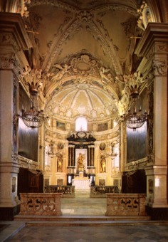 La Cappella del Santo Rosario posta al fondo della navata di sinistra.Ai lati due tele che rappresentano la Natività.