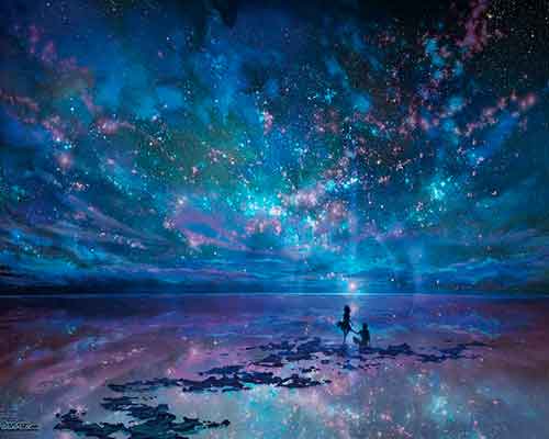 immobile con il moto dei pensieri dando origine a un moto cosmico