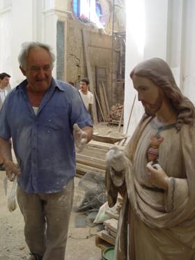 ha anche realizzato la mano mancante alla statua in gesso del Sacro Cuore.