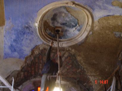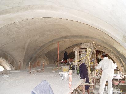- Navata centrale - : Scrostamento, sabbiatura, lavaggio, stesura intonaci volta centrale