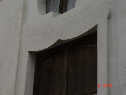 | Portale: modanatura completata | Condizioni di degrado del tetto in navata laterale |