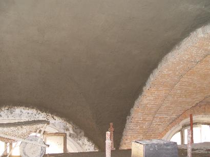 | Fase terminale della stesura dell'intonaco sulla volta del coro | |