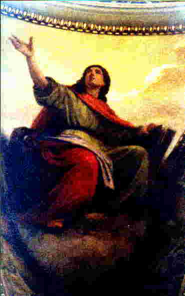 è comunemente raffigurato con un'aquila,per l'altezza sublime delle