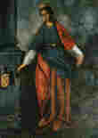 Opera del '700, di chiara e manifesta ascendenza barocca per la gentilezza della linea e del tratto pittorico che decantano nella grazia soave del volto della Vergine e Martire Trofimena. L'ambientazione è molto particolare. La santa sembra quasi sospesa in un'atmosfera rarefatta già circonfusa dalle nubi del Paradiso. Molto vivace è il rosso del manto, allusione al martirio; il panneggio delle vesti segue un andamento molto articolato. Sulla colonna, a sinistra, simbolo del tempio a lei dedicato si intravede uno stemma gentilizio appartenente presumibilmente alla famiglia donatrice dell'opera.