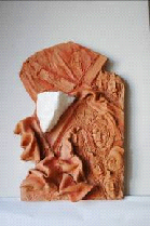 L’immagine del Cristo, così forte e fragile insieme, diafana e corrosiva, intensa e lacerata come tenue tela al vento, pare emergere e quasi “liberarsi”con immenso sforzo dal fondo materico, quasi come un catartico affrancamento da una materia che la opprime.