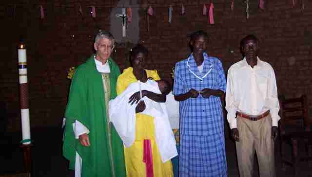 I genitori di un'infante appena battezzato, insieme con la madrina e P.Davide.