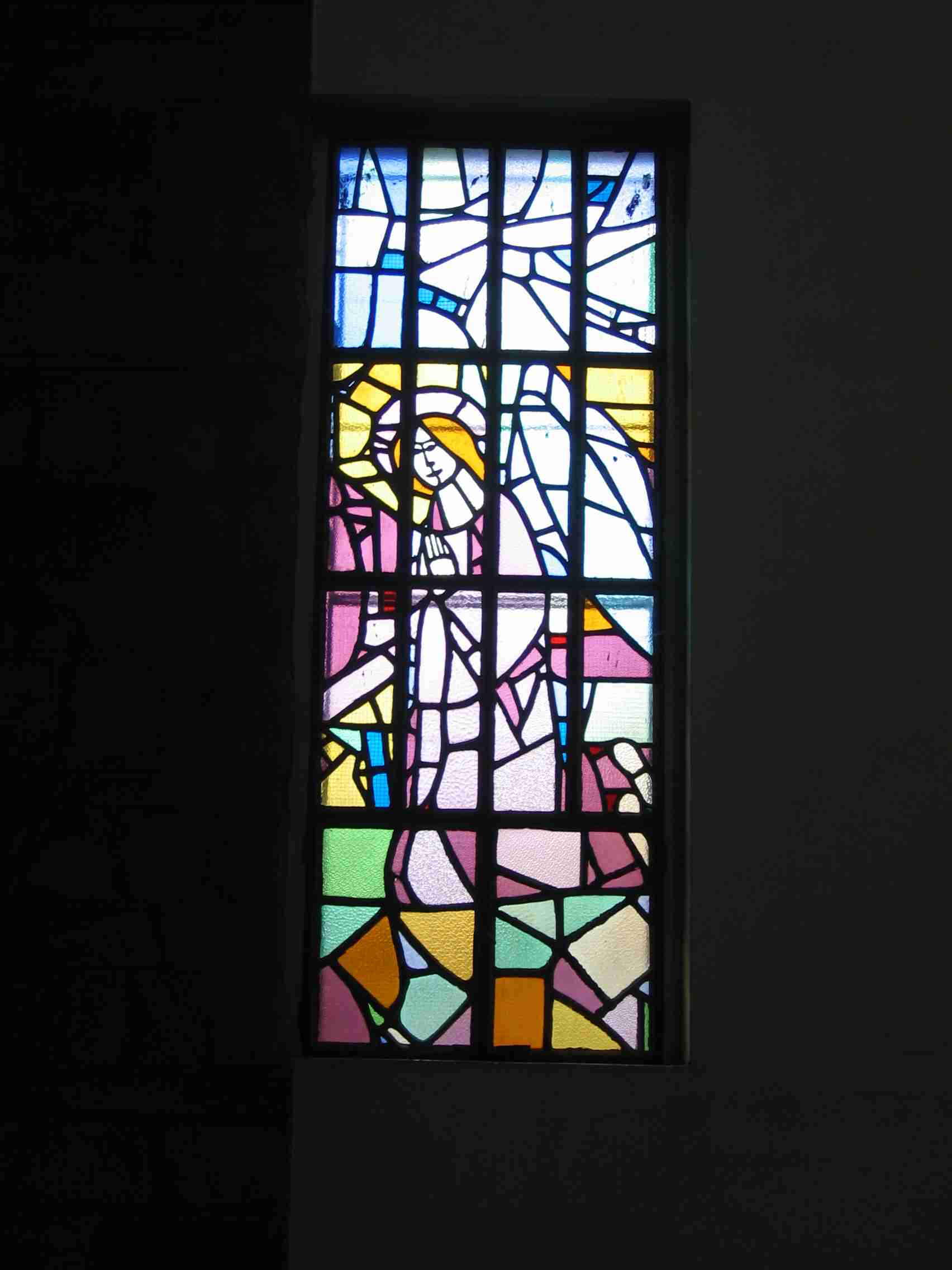 E’ stata giustamente conservata la vetrata a fianco dell’altare dedicata