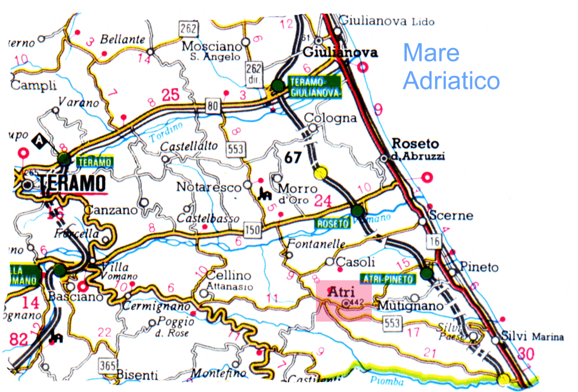 La cittą di ATRI puo essere raggiunta con i seguenti mezzi: automobile: - strada statale 16 (Nazionale): provenienti da nord: bivio da Pineto per Atri; provenienti da sud: bivio da Silvi Marina per Atri - uscita autostradale A14 ATRI-PINETO Treno: Arrivo stazione di Pescara, poi con il servizio di trasporto con pulman (linea ARPA) per Atri |