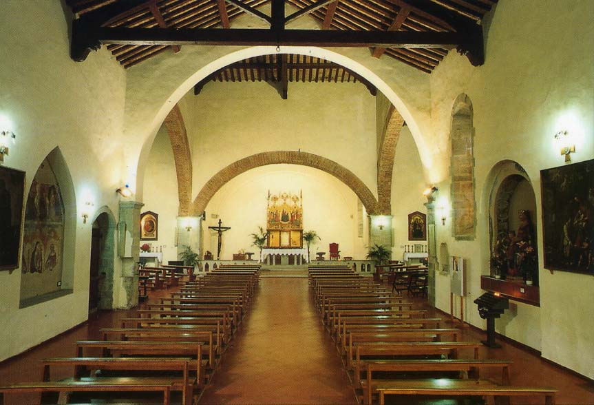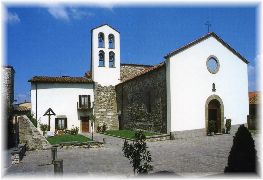 | All'esterno la chiesa nella parte sinistra conserva una elegante trifora e la porta delle Campane porta una scritta che è appena leggibile: «A. MCCCX Temp. Guidonis Episc. Aret.». | |||