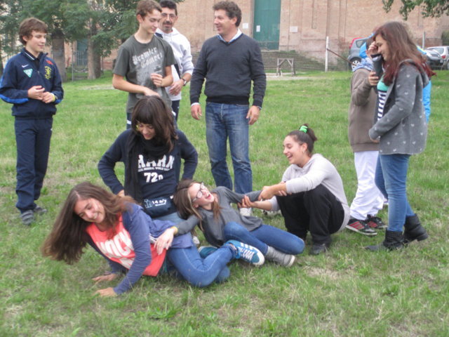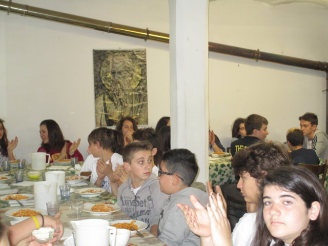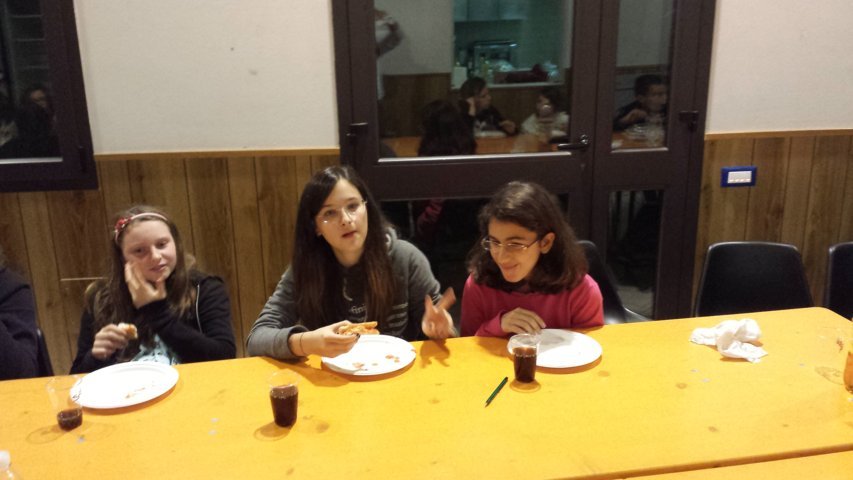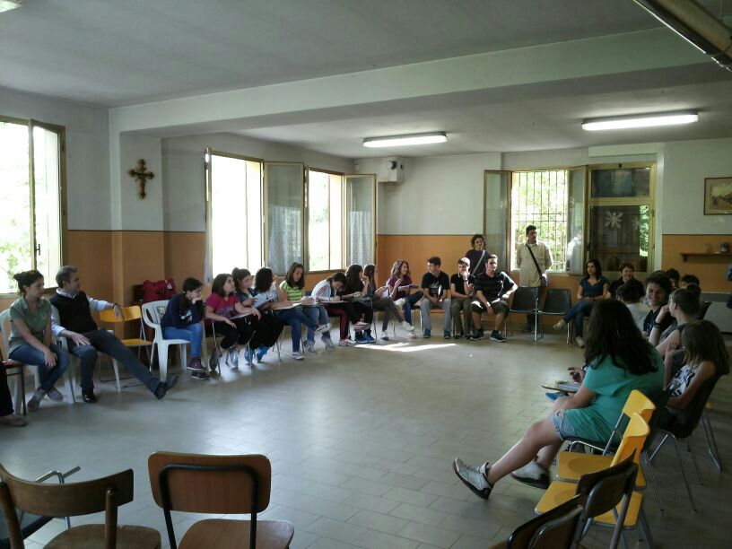 Sabato 10, nel pomeriggio, siamo partiti per andare alla "2 giorni" con il Gruppo Giovani. Siamo andati a Rodiano insieme ai ragazzi delle medie di altre 2 parrocchie: Bazzano e Monteveglio. Appena arrivati alla casa siamo andati nelle camere; le ragazze erano in un'unica camera al piano superiore invece i ragazzi erano al piano inferiore. Abbiamo fatto un incontro con 2 persone che ci hanno parlato delle relazioni tra le persone. Ci siamo divisi in 3 squadre e siamo usciti a giocare. C'era un campetto da calcio, un campetto da pallavolo e un canestro. Le squadre avevano compiti diversi: c'era chi lavava i piatti a pranzo e chi a cena, chi sparecchiava a pranzo e chi a cena, ecc... Alla sera abbiamo fatto dei giochi nel salone poi dopo la compieta siamo andati nelle camere. La notte č stata abbastanza movimentata e abbiamo chiacchierato e scherzato fino a tardi. I nostri animatori ci hanno regalato delle magliette per ricordo con disegnati i simboli dei 3 paesi partecipanti e la scritta "10-11 maggio 2014 Rodiano". CI SIAMO DIVERTITI MOLTISSIMO!!!