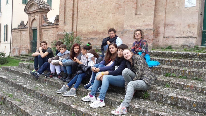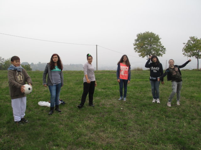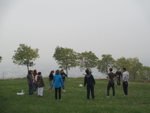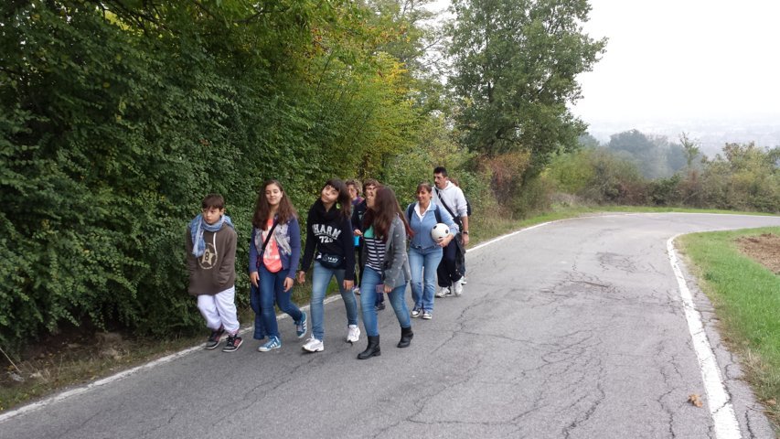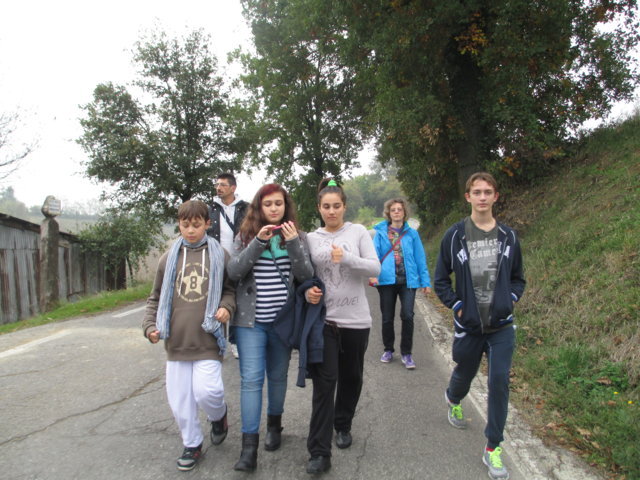 Oggi siamo andati con la macchina fino a Ceretolo, da qui abbiamo proseguito a piedi sulla strada per l'Eremo di Tizzano: una strada in salita lunga circa due chilometri. Dopo circa 35 minuti siamo giunti all'Eremo abbiamo fatto qualche foto e poi abbiamo giocato. Il tempo non era dei migliori era molto grigio e nebbioso, siamo stati qui un po' e dopo siamo tornati a piedi fino alle macchine. Infine siamo arrivati in chiesa per la messa.