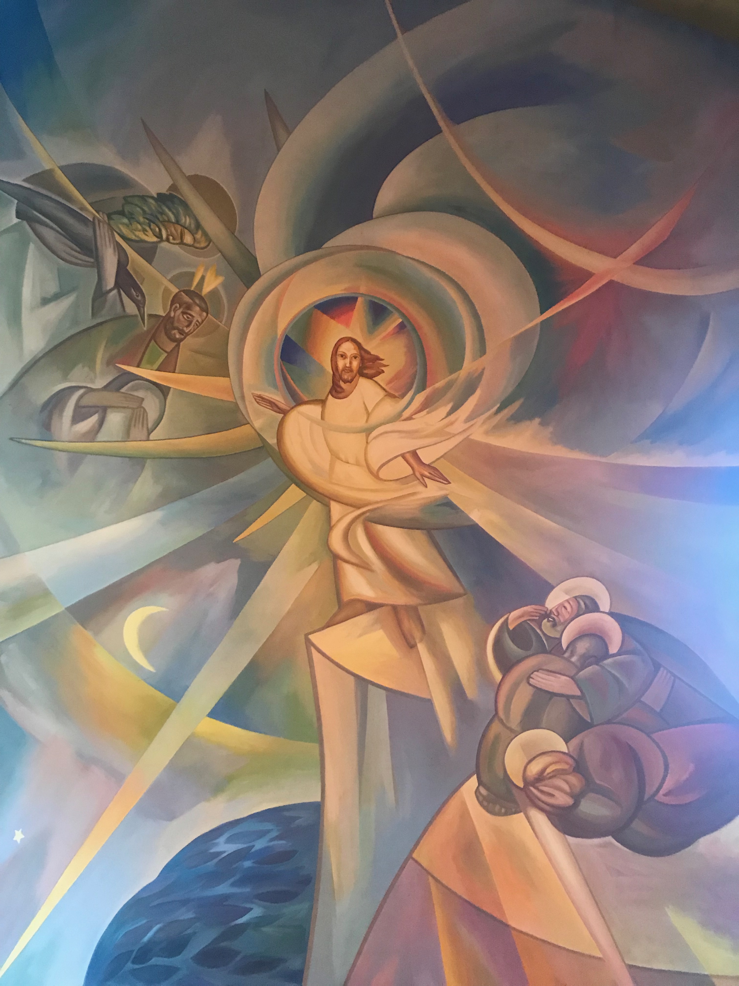 Entrando in chiesa, certamente l'abside è una delle prime cose che cattura il nostro sguardo. Un vortice di colori e luce descrive il momento della Trasfigurazione di Gesù sul Monte Tabor.