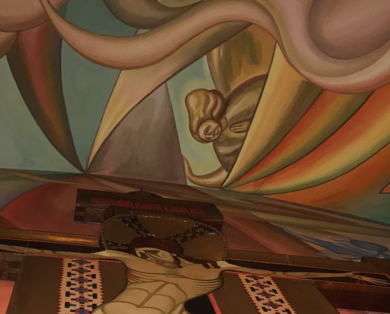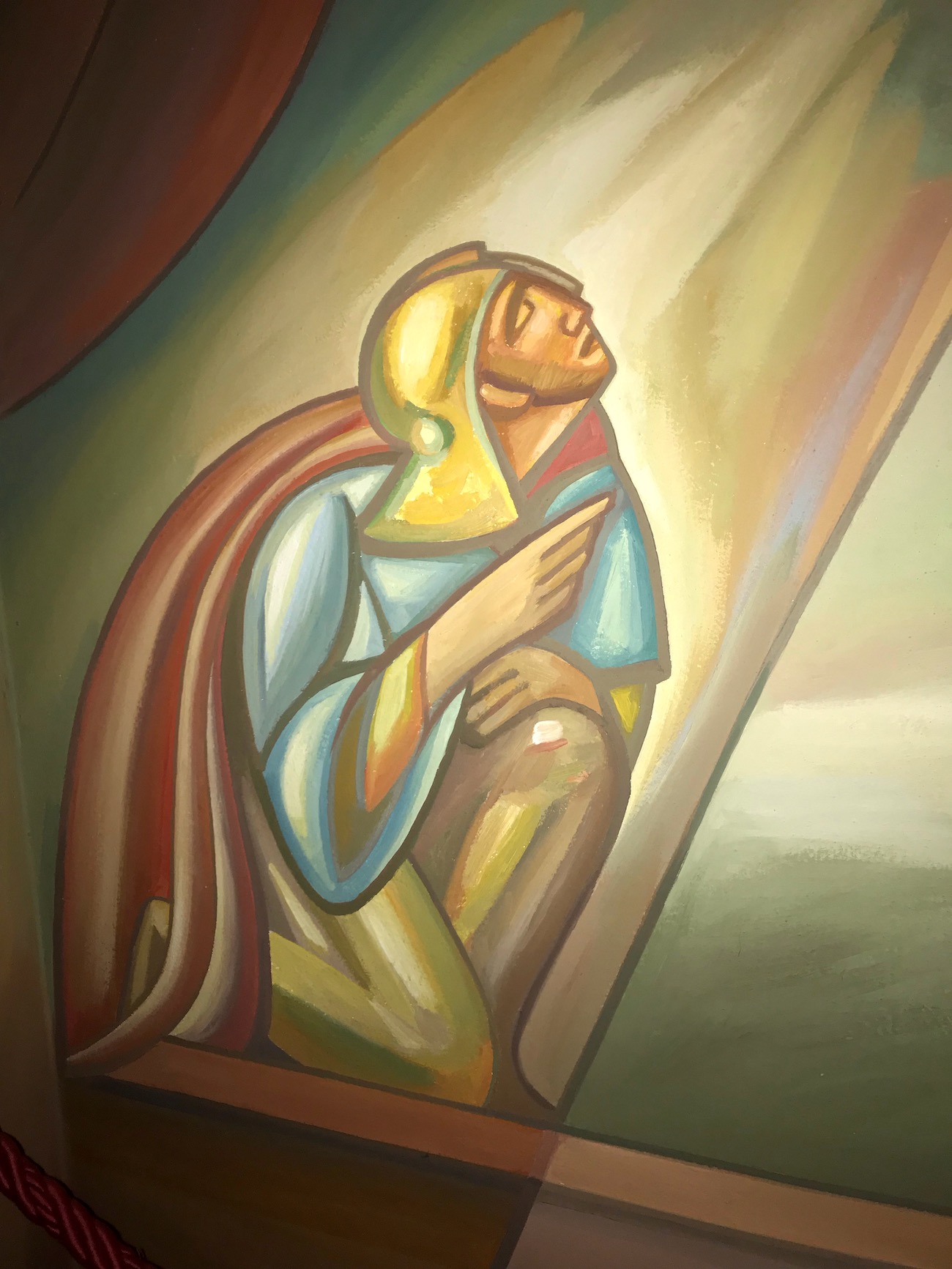 Nella volta superiore si può intravedere una figura anziana, rappresenta il Padre che guarda compassionevolmente il Figlio sulla croce. Parallelo che certamente è lecito fare con Abramo che guarda Isacco vittima sacrificale innocente.