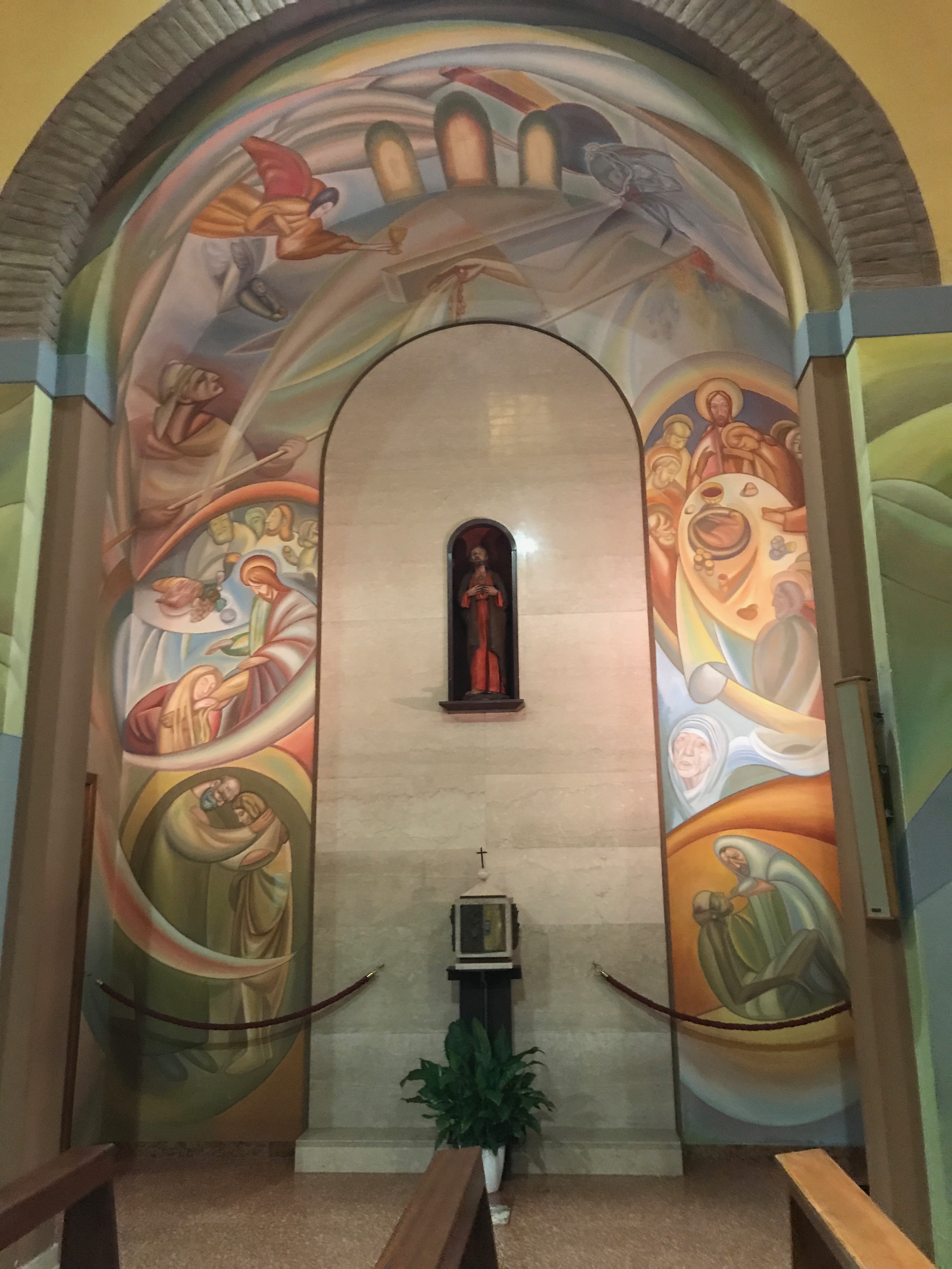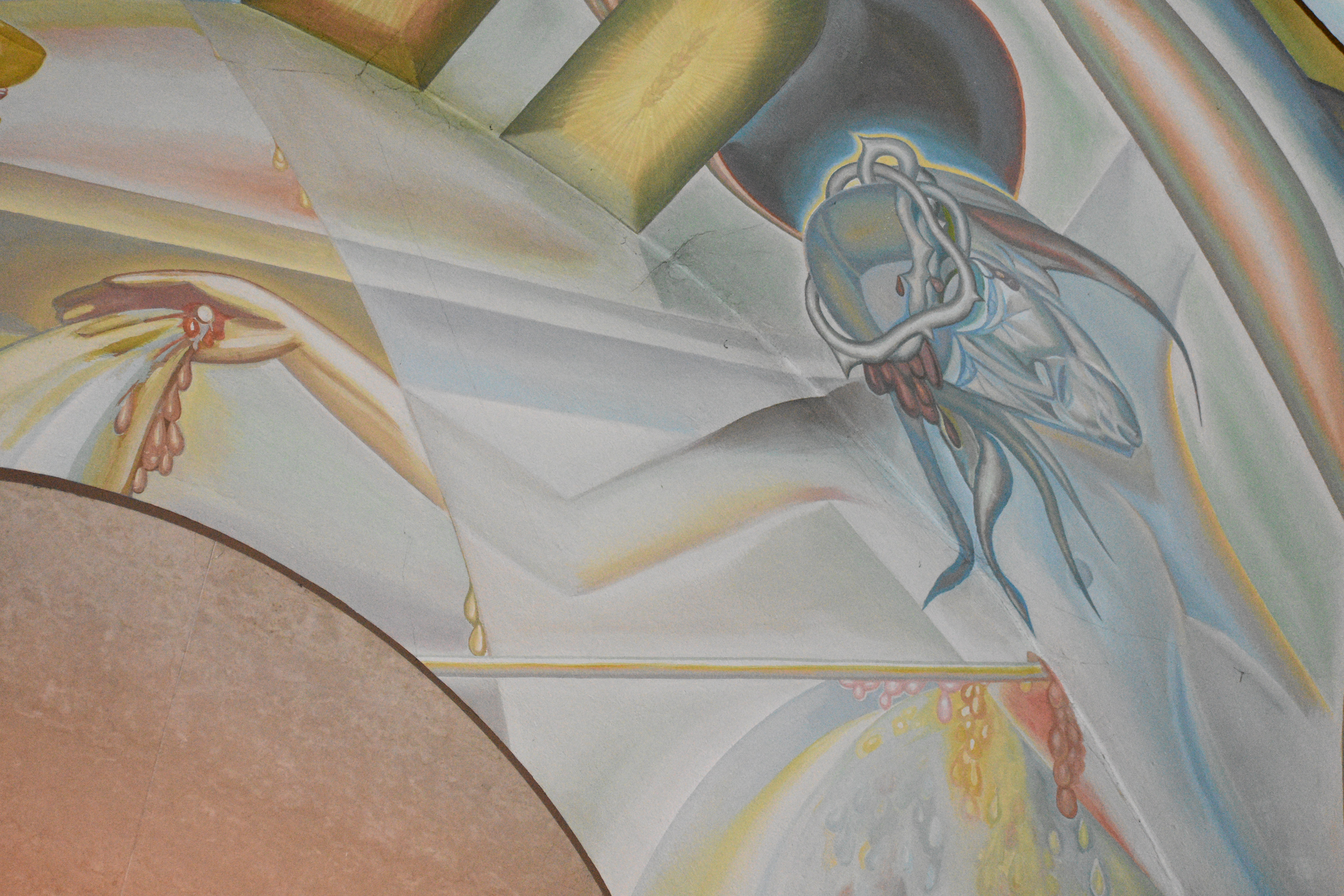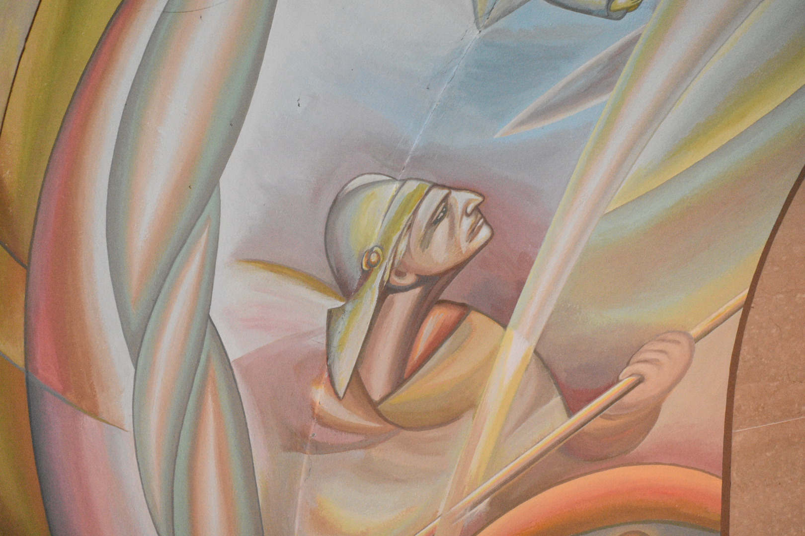 - a destra quella del Buon Samaritano (Lc 10, 25-37), possiamo vedere il samaritano che si prende cura del sofferente. C'è un volto che lega l'ultima cena e la parabola del buon samaritano: quello di Santa Madre Teresa di Calcutta, figura importante dell'ultimo secolo che può essere considerata come figura della misericordia umana e del buon samaritano
