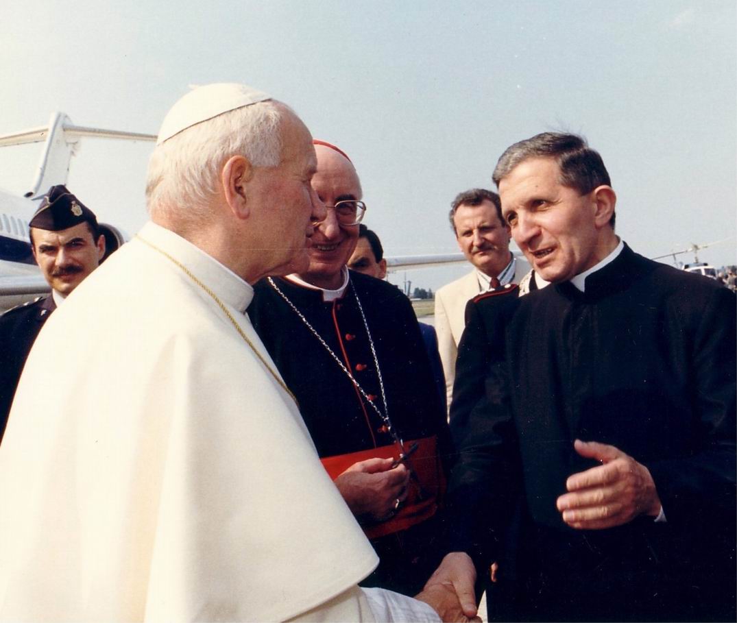Don Mario accoglie il Papa all'aeroporto