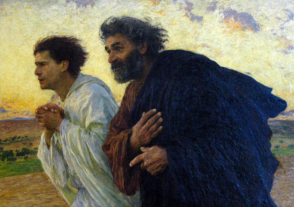 Gesù incarica le donne di portarne l'annunzio a Pietro, distintamente dagli altri Apostoli (cfr Mc 16,7); da lui e da Giovanni corre la Maddalena per informare della pietra ribaltata dall'ingresso del sepolcro (cfr Gv 20,2) e Giovanni cederà a lui il passo quando i due arriveranno davanti alla tomba vuota (cfr Gv 20,4-6); sarà poi Pietro, tra gli Apostoli, il primo testimone di un'apparizione del Risorto