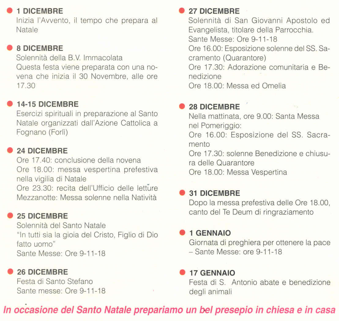 Il venerdì, 29 novembre: Consiglio parrocchiale. Si parlerà della visita pastorale (2003) e della