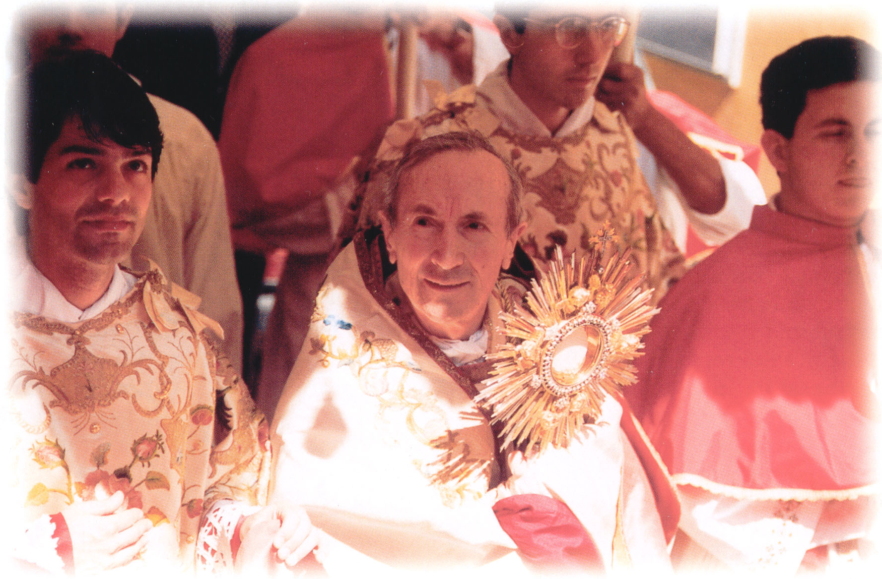 Decennale Eucaristica 1994 - Il parroco con il Santissimo per le vie della parrocchia |