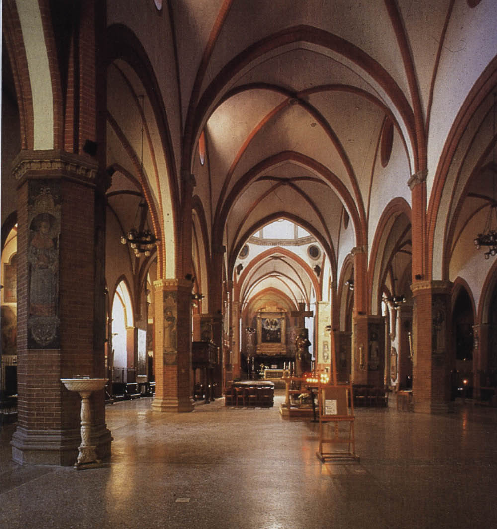 Nelle COLONNE della navata centrale possiamo ammirare affreschi di Santi, Abati e Canonici regolari dipinti da Giacomo e Giulio Raibolini, figli di Francesco detto il Francia.