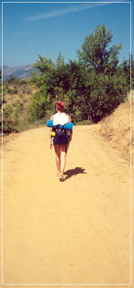 Camino de Santiago. 1° giorno: incontriamo Filix. Filix è un giovane tedesco e ha iniziato il suo pellegrinaggio da Roncisvalle. Cammina con fatica: un pellegrino lo ha aiutato a bucare una vescica, ma ha provocato un' infezione! Filix non parla molto, accetta qualcosa da mangiare e poi continua il suo Cammino. Ci ha regalato il primo spunto per comprendere il modo di intendere il Camino: la solitudine. Può essere interiore ed esteriore e consiste nel saper stare bene con se stessi, in armonia con i propri pensieri e senza legami con le cose del mondo che non siano la natura o il tuo corpo.
