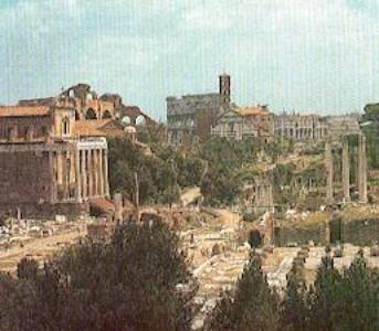 Veduta dei resti degli edifici che costituivano il Foro Romano,