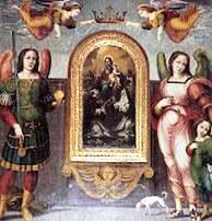 Arcangeli Michele e Raffaele con Tobiolo, al centro madonna del Rosario |