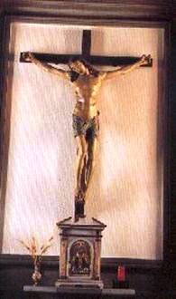 policroma raffigurante Santa Lucia di Benedetto Buglioli(1537). Sull’ altare maggiore è collocato un Crocifisso