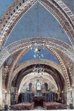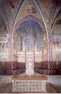 Francesco. Il coro ligneo sul fondo è di epoca gotica, mentre il grande affresco sul catino absidale risale all’inizio