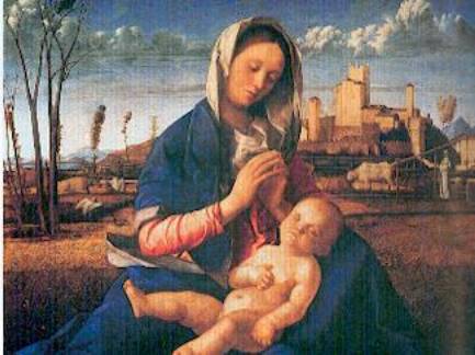 Bellini. La grande massa triangolare di Maria in adorazione davanti al