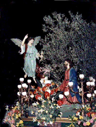 Ubicazione: Corso Vittorio Emanuele (Chiosco Rosso) Gestione attuale: Da sempre pastai e mugnai Autore: Francesco e Vincenzo Biangardi. Anno: 1884 Materiali costruttivi:Gruppo processionale statuario con testa e piedi in cartapesta, mani e ossatura del corpo in legno, panneggi in tela olona rivestita di stucco. Committenza e ceto di appartenenza originari:Pastai e mugnai (compresi i panificatori che nel 1885 formano un ceto a parte con il gruppo “La Cena”) |