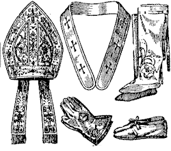 Mitria, pallio, chiroteche (guanti), calze e sandali pontificali