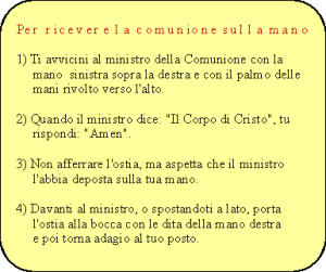 in Italia anche depositando l'ostia sulla mano dei fedeli. Da questa data,