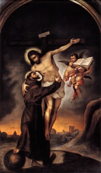 Particolare della tela, risalente al 1922, che raffigura il poverello d'Assisi nell'atto di deporre Gesł dalla croce.