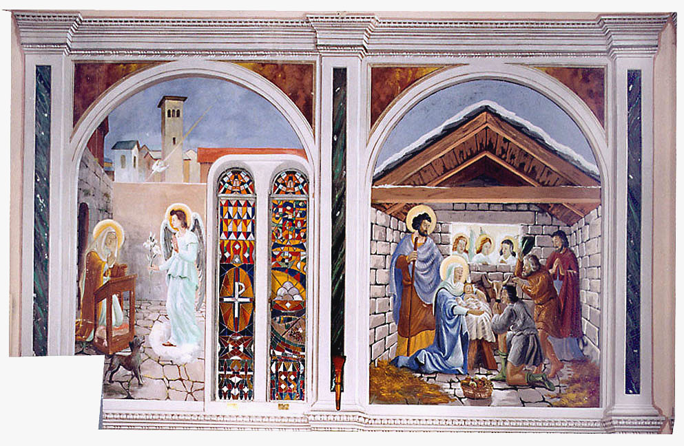 Sulla parete destra -entrando- la Natività e l'Annunciazione.