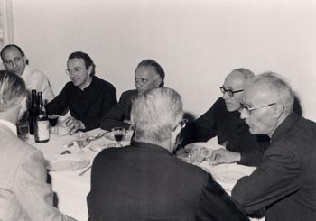Don Aldo Poggi con un gruppo di confratelli ospiti in Valsellustra del fratello Umberto e della cognata Dina Cristiani. Da quegli incontri sorge l'idea di una chiesetta nella valle che eviti di doversi recare a Pieve Sant'Andrea o al santuario del Piratello per celebrare la santa messa.