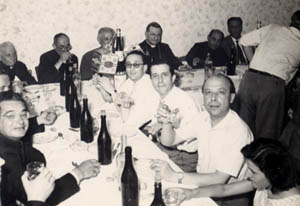 Il Vescovo insieme a Don Aldo a tavola con la comunità parrocchiale.