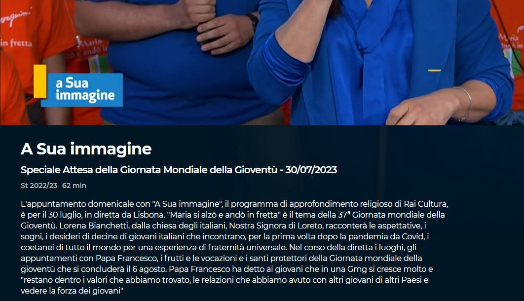 Venerdì 4 agosto, su Rai1, è andata in onda da Lisbona un'edizione speciale di "A Sua Immagine": «Giovani in festa»