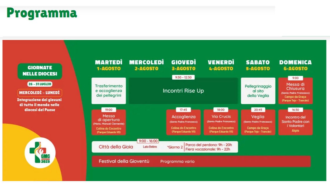 La GMG inizierà il 1° agosto con la Messa di apertura che si terrà al Parque Edoardo VII e sarà celebrata dal cardinale patriarca di Lisbona, Manuel Clemente.