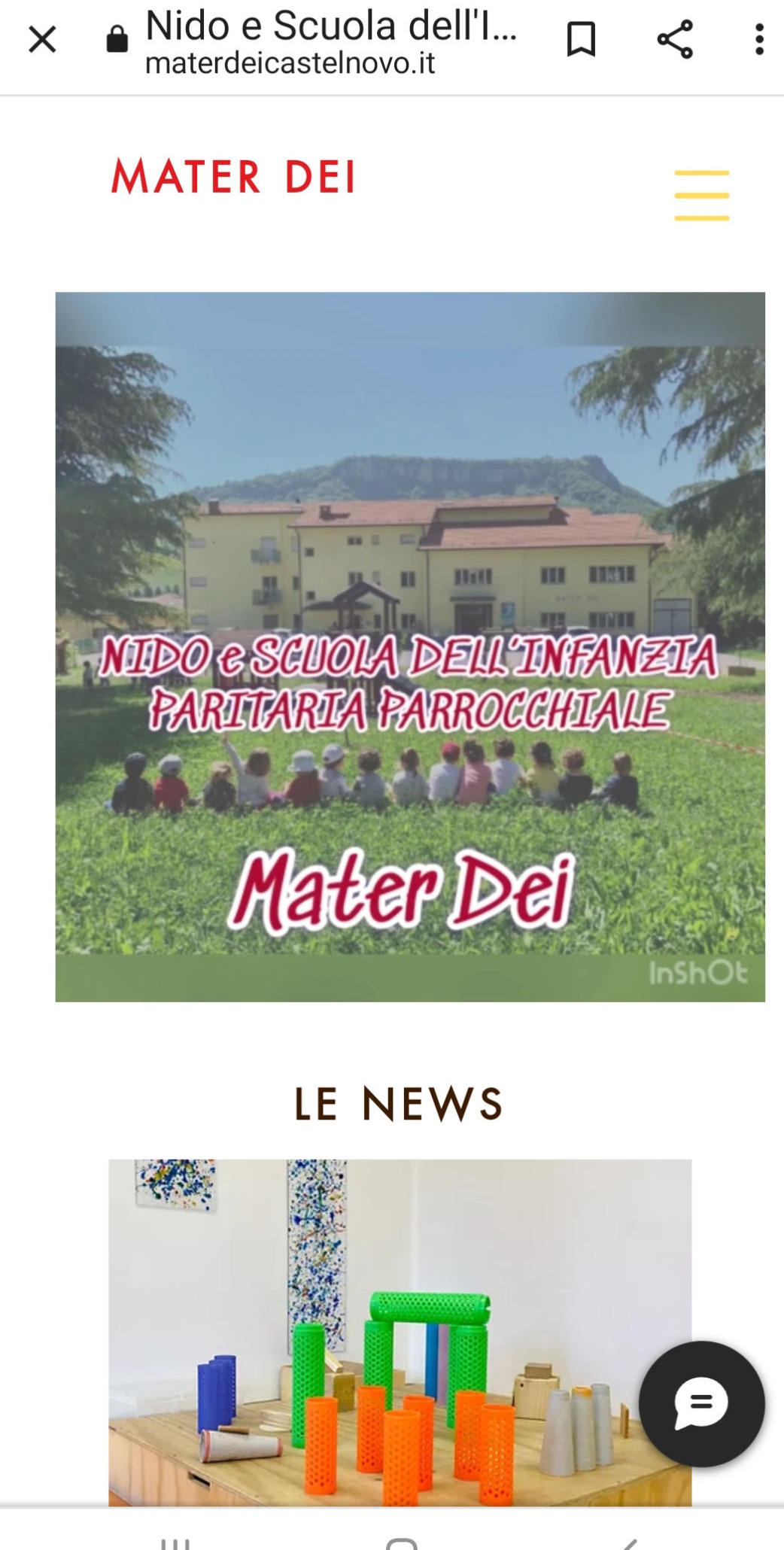 Sono aperte le iscrizioni per l'anno scolastico '26 -'27 al Nido e Scuola dell'Infanzia Mater Dei.