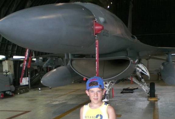 davanti ad un vecchio aereo inutilizzato. |