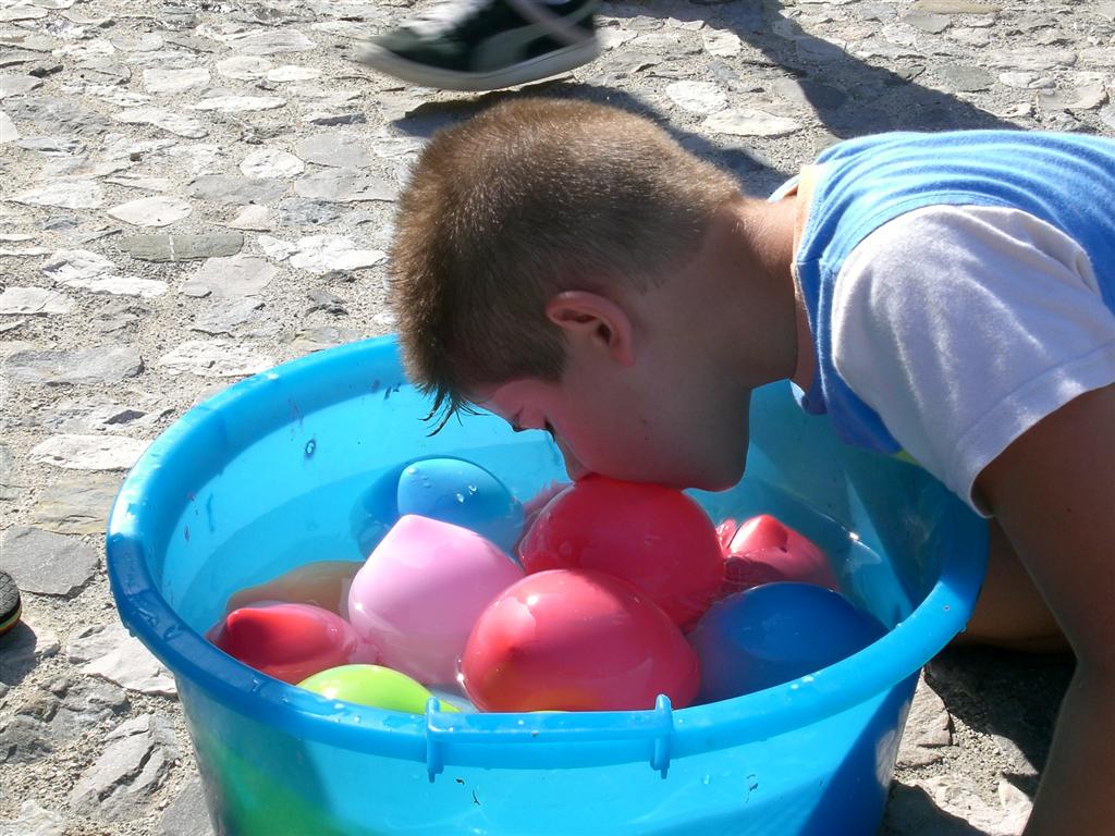 palloncino pieno d'acqua con la bocca... |