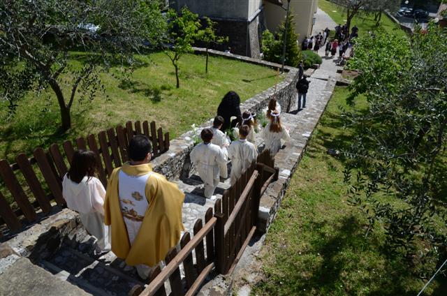 Eccoli mentre dalla canonica scendono verso la Chiesa.