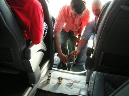 Don Alberto celebra la Santa Messa all' interno del pulman.