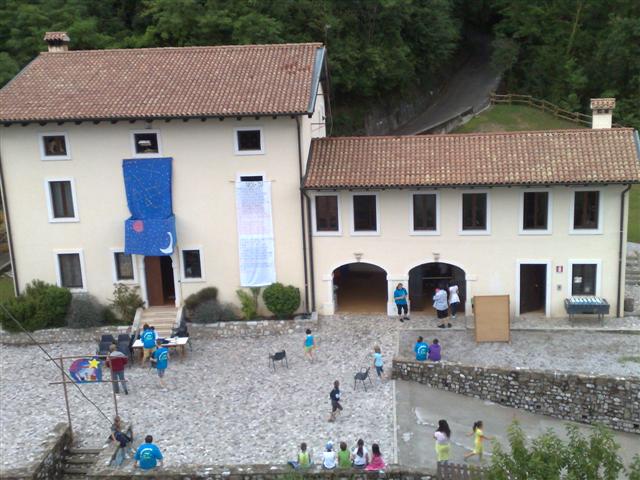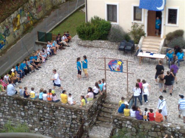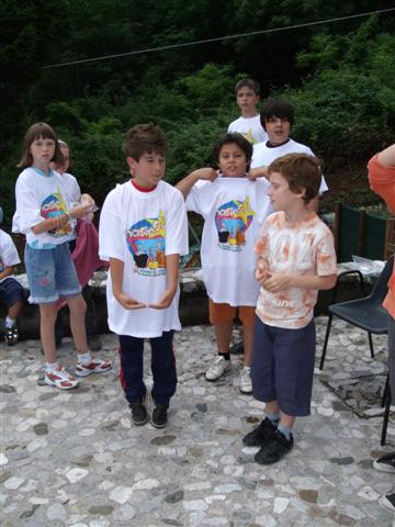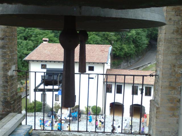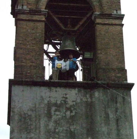 Dall' alto del campanile ci si prepara al lancio delle magliette