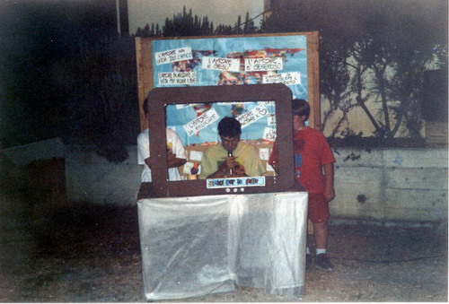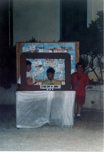Il presentatore , Dott Mentina , affiancato dalle veline , si affanna nella