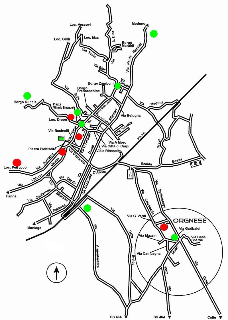 Sorgente Recoaro Borgo Runcis Piazza Vittorio Emanuele Ponte Maraldi e diga La Chiesa di San Remigio S. Antonio e grotta della Madonna Il Palazat Chiesetta San Lorenzo Borgo Petrucco Stazione ferroviaria Orgnese  la piazza Chiesa di S. Leonardo Bier Covas