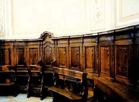 IL CORORisale al XVIII secolo (su un cassetto è scritta a pennello la data 1767). Si trova dietro l'altare ed ha venti posti più la cattedra centrale. Ogni posto è delimitato da lesene con pendagli intagliati applicati. Anche il sedile del presbiterio, al quale accedono i sacerdoti durante le funzioni, richiama lo stile di quelli del coro. Se vuoi approfondire la conoscenza storico-artistica della nostra chiesa, vai al sito degli scavi e dei restauri fatto dagli alunni dell'ITIS Righi di Corsico oppure leggi on-line il libro La chiesa da cui veniamo del prof. Ballarini |
