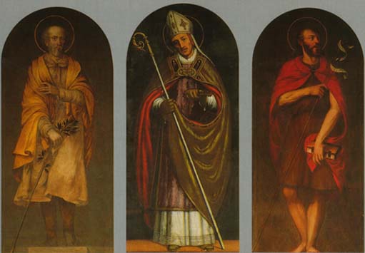 Marco Vecellio (fine XVI sec.) - olio su tavola: S.Giuseppe - S. Vigilio - S. G. Battista