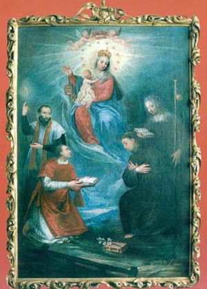 Madonna del Carmine con Gesù Bambino, S. Angela pellegrina, S. Antonio da