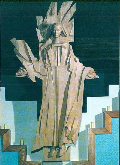 fa riscontro l’immagine della Madonna, un’altra scultura, posta al centro